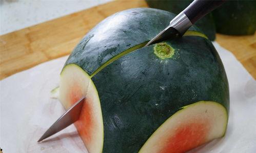 1. 横切西瓜:将西瓜放在砧板上,用刀从西瓜的顶部开始,沿着西瓜的纹理横着切一刀,切到西瓜底部。